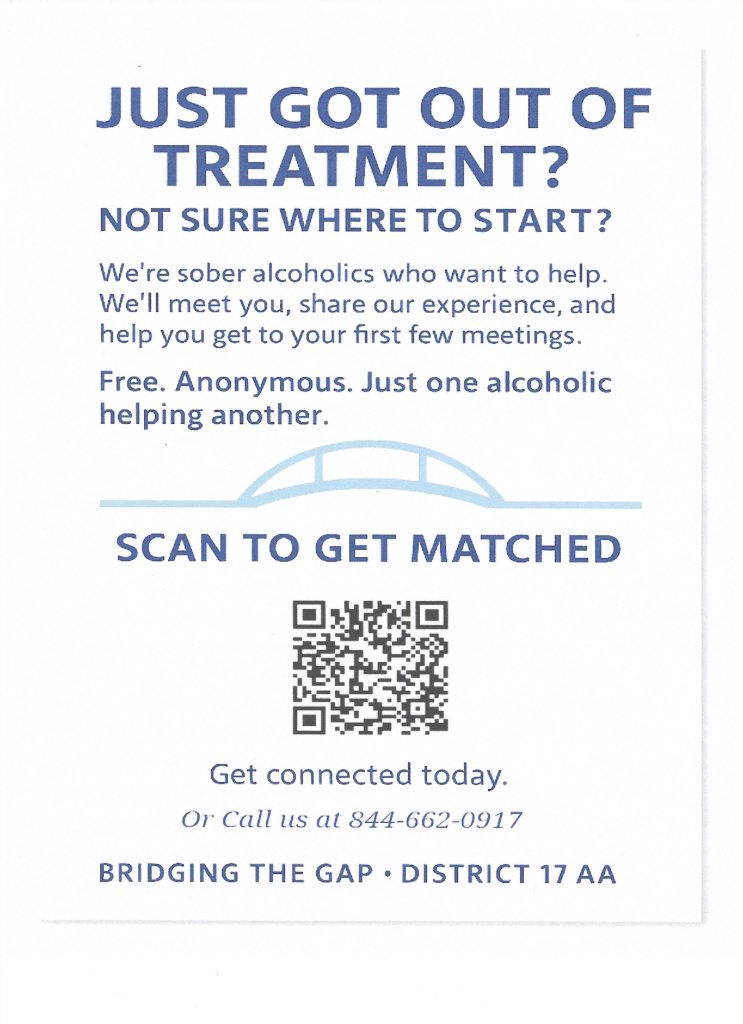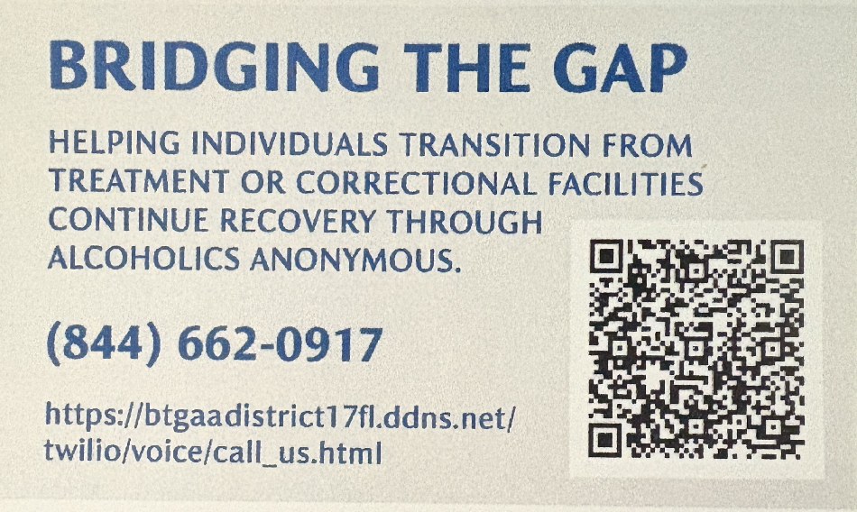Bridging the Gap Your Help is Needed. Please volunteer to be a contact. https://btgaadistrict17fl.ddns.net/btg/